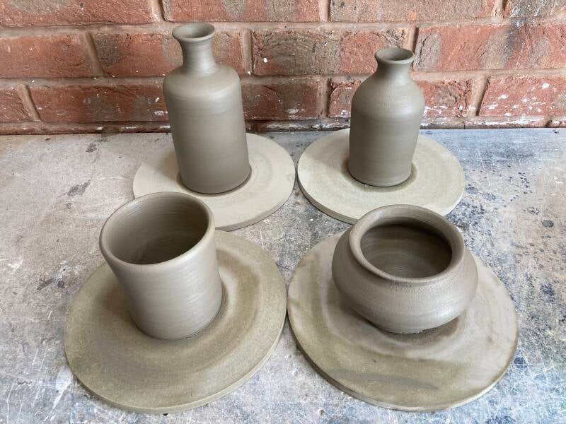 Knocking out a few pots to bisque fire before decorating and getting them in the RAKU kiln I have made.
