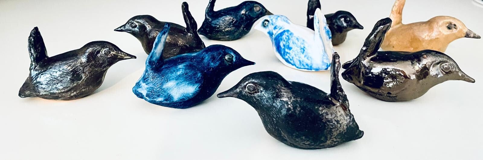 Handmade Wren figuriine available in a variety of glazes. Approximately 8cm x 5cm x 3cm. Each one is unique